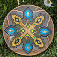 For the past six years, I’ve been building and painting drums, a path that began with ceremony and evolved into a deep relationship with this ancestral medicine tool. Through this process I have developed my own intuitive style—wrapping crystals in leather, adorning drums with paint, leather and fur, and painting from a place of spiritual connection.